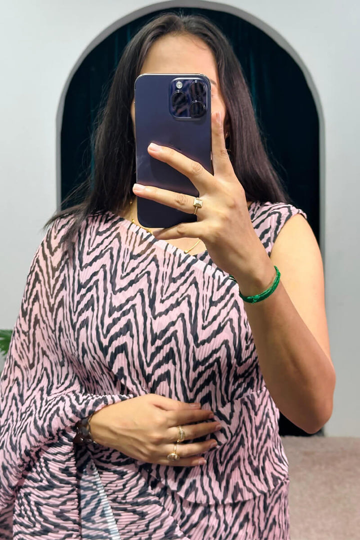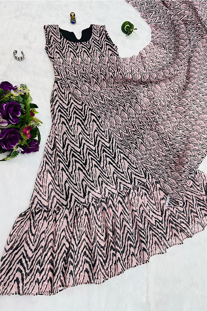 This elegant 1-Minute Ready To Wear Georgette Gown Saree in rama colour with yellow print is perfect for any occasion. The ready to wear saree comes in a beautiful turquoise colour with a 2-meter ruffle flair and a printed georgette crush fabric pallu. Made from high-quality georgette and micro cotton, this saree is stitched for easy wear and includes a gown piece in the box for added convenience. Dry clean only for best care.
