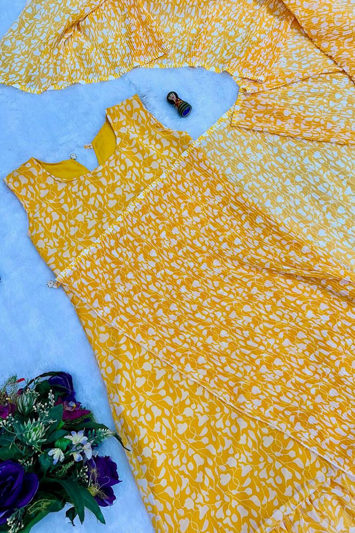 1-Minute Ready To Wear Georgette Gown Saree in yellow bandhni