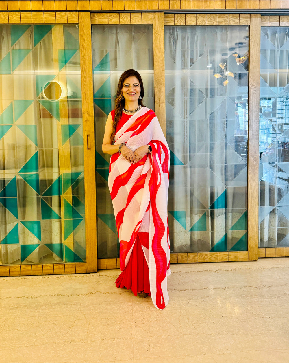 This stunning Minute Ready To Wear Georgette Gown Saree features a beautiful floral red print and a 2 meter ruffle for added flair. The stitched saree is made with high-quality Georgette fabric, and comes with a micro cotton inner lining for added comfort. Perfect for any occasion, this saree is easy to wear and easy to care for with its dry clean only instructions.