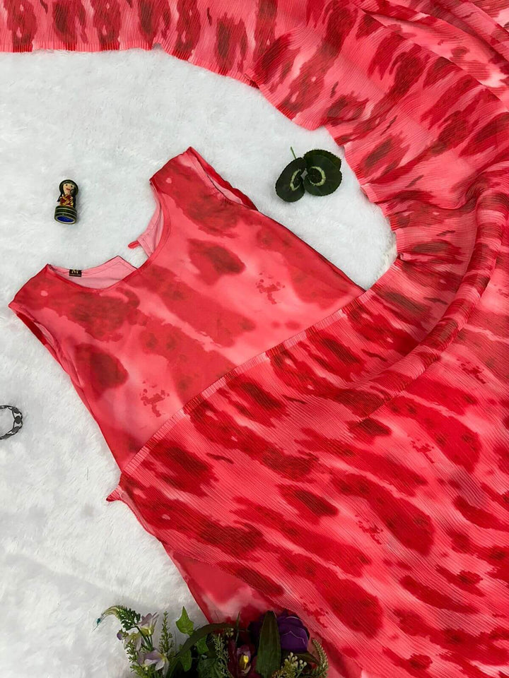 SAREE SPECIFICATIONS: This stunning Minute Ready To Wear Georgette Gown Saree features a beautiful floral red print...