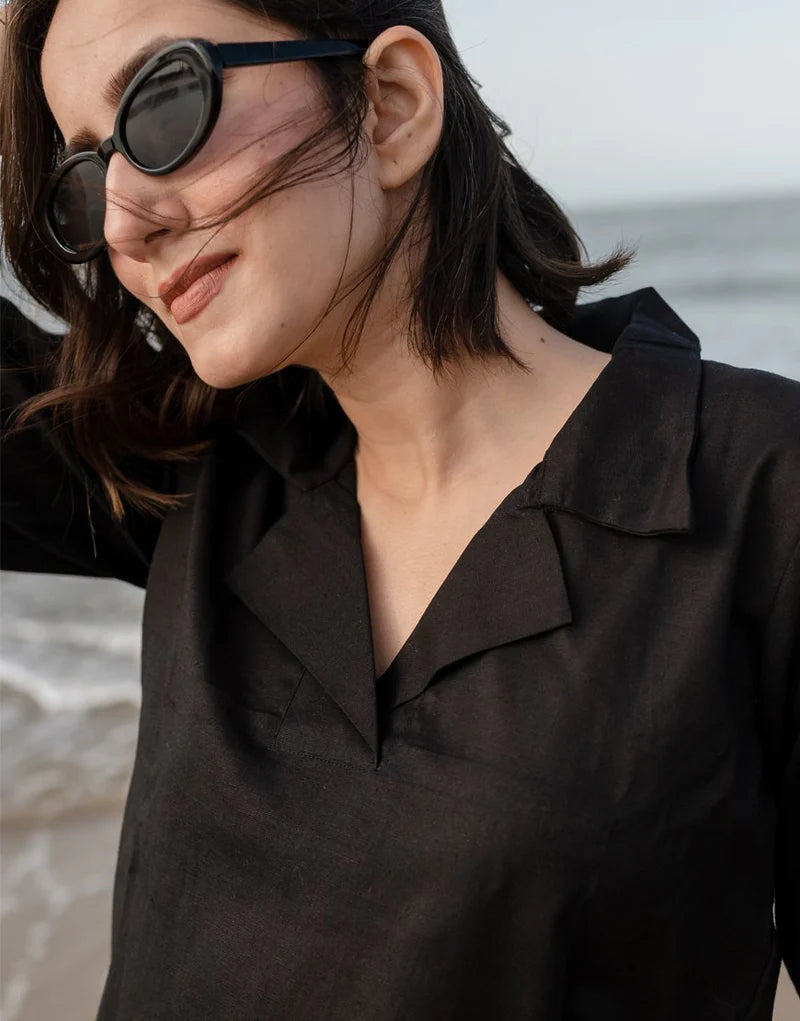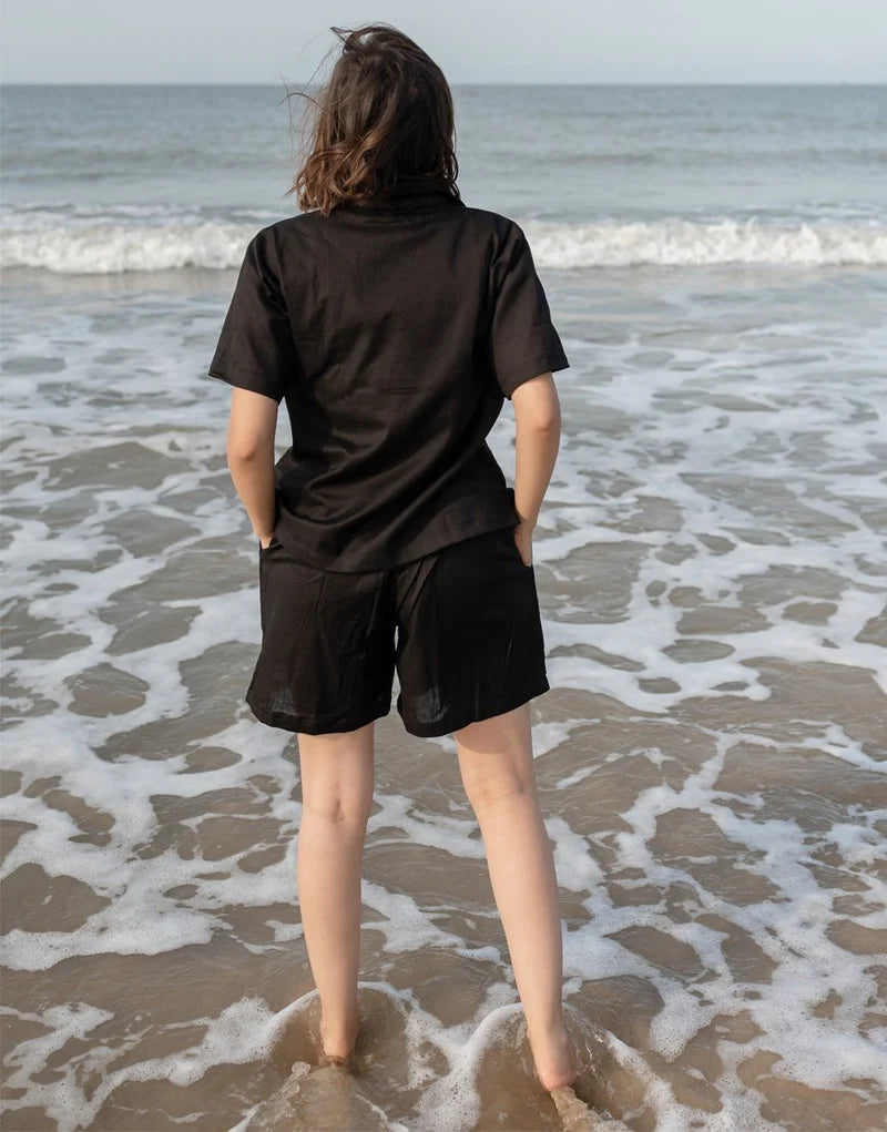 Slay summer vibes with our Kohl Black Shorts and Top combo! Crafted from cotton hand-loomed fabric, this ensemble brings comfort and style together in a delightful black hue. The top boasts a trendy polo neck and half sleeves, while the shorts feature a clinched waist and two side pockets for ultimate convenience. With a straight silhouette and a fun-loving attitude, this combo is your go-to for turning heads and having a blast under the sun. It’s time to unleash your inner fashionista and make a statement in Kohl Black!