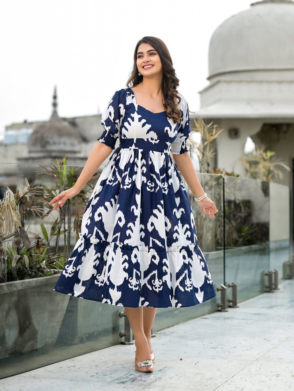 Experience the magic of comfort and style with our Blue and White Tiered Midi Dress. Made with breathable materials, this dress will keep you feeling cool and confident all day long. Plus, its fashionable design will have you turning heads wherever you go. Dress comfortably and in style with our Blue and White Magic Tiered Midi Dress.