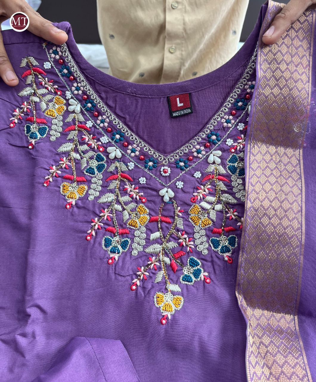 step into the world style subtle glamour with our new PREMIUM CHANDERI SILK Kurta pent Dupatta set , the Kurta has beautiful HAND WORK
