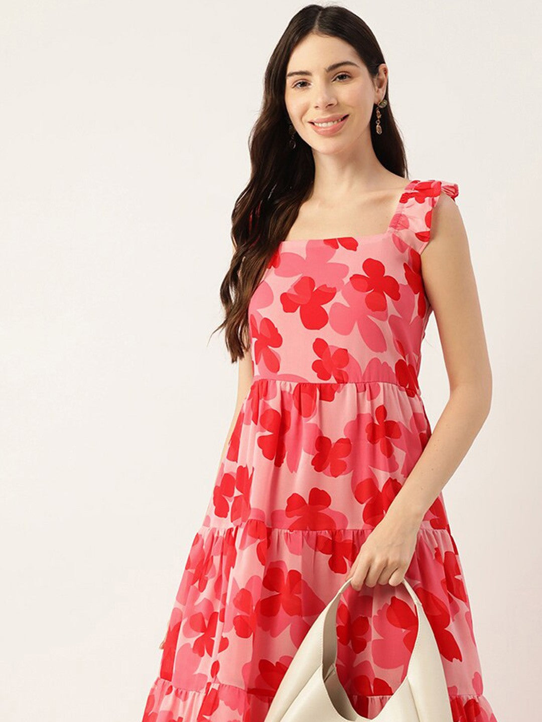 This Floral Print Fit & Flare Dress is perfect for any occasion. The midi/calf length and A-line design make it ideal for women who want a comfortable yet stylish look. Made with high-quality georgette fabric, it's perfect for western wear. Elevate your wardrobe with this must-have dress.