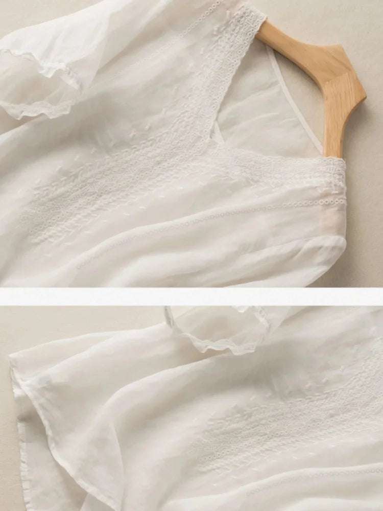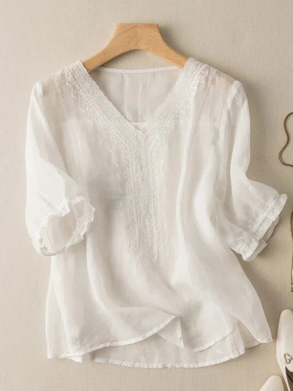 Introducing our Graceful Lace Overlay blouse, in a vibrant orange hue that will add a pop of...