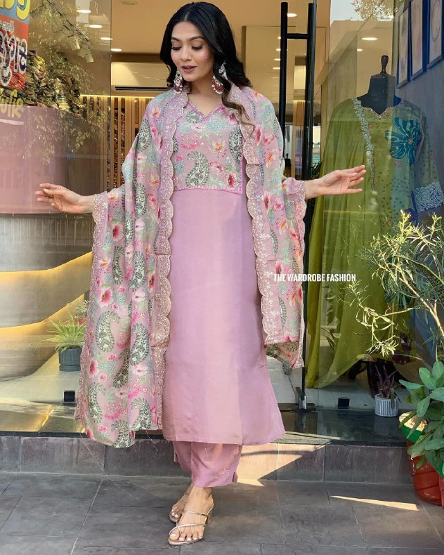 Featuring beautiful Heavy Suit Set which is beautifully decorated with intricate hand coding heavy embroidery, Zari weaving . It is paired with matching pants and Lace Dupatta.
