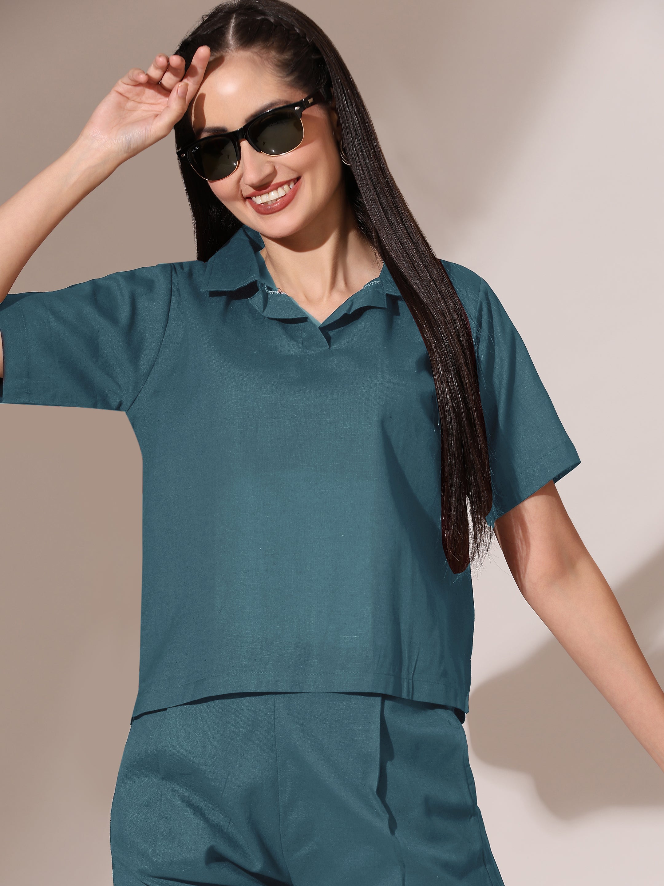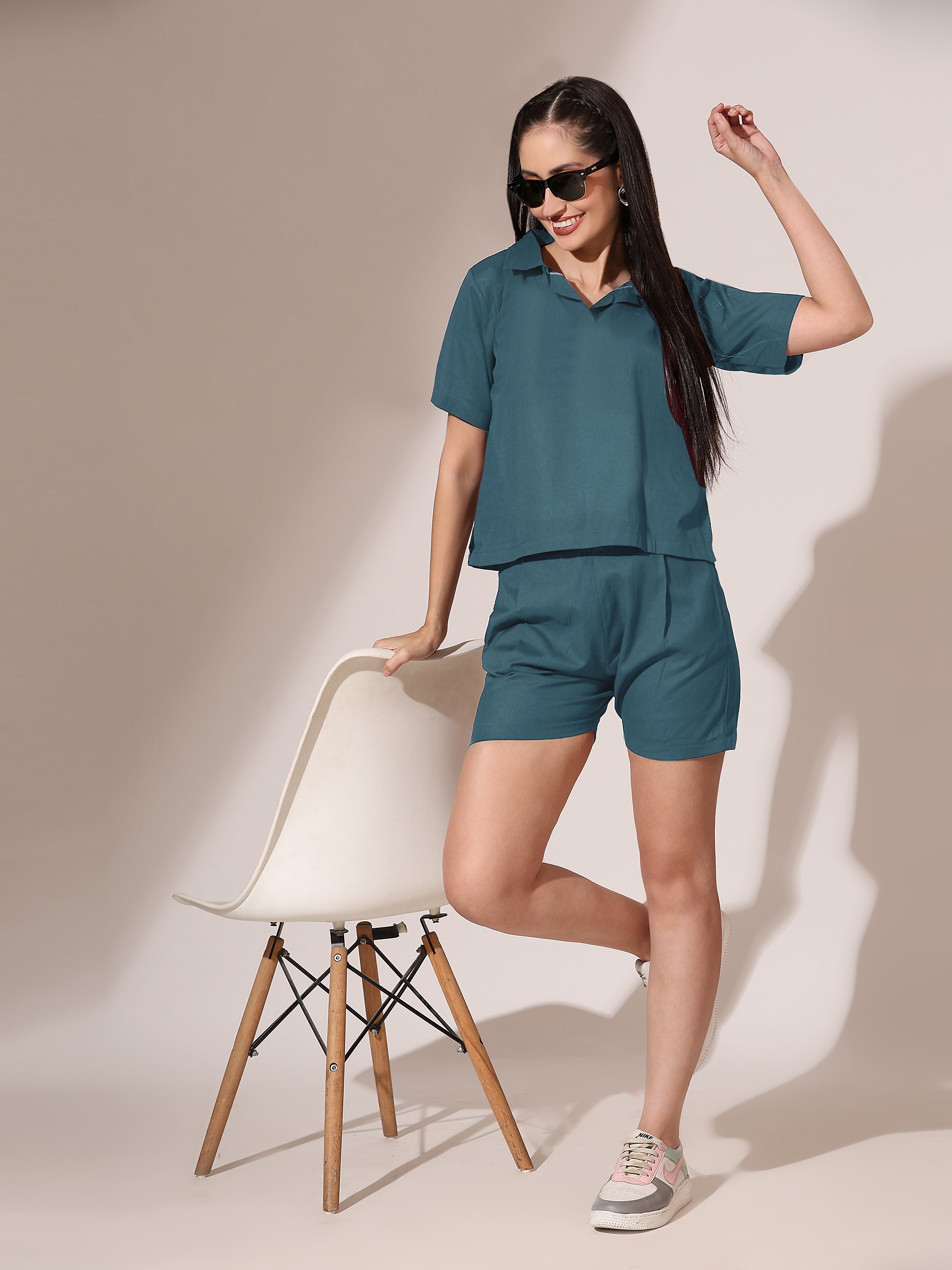 Dive into a world of mesmerizing beauty with our Kashmiri Blue Shorts and Top combo! Handcrafted from exquisite cotton hand-loomed fabric, this ensemble is a true masterpiece. The top boasts a chic polo neck and playful half sleeves, while the shorts feature a clinched waist and two side pockets for convenience and style. With their captivating Kashmiri Blue hue and sleek straight silhouette, this combo is your passport to a fashion adventure like no other. Embrace the allure of Kashmiri Blue and make a statement that captures hearts and imaginations!