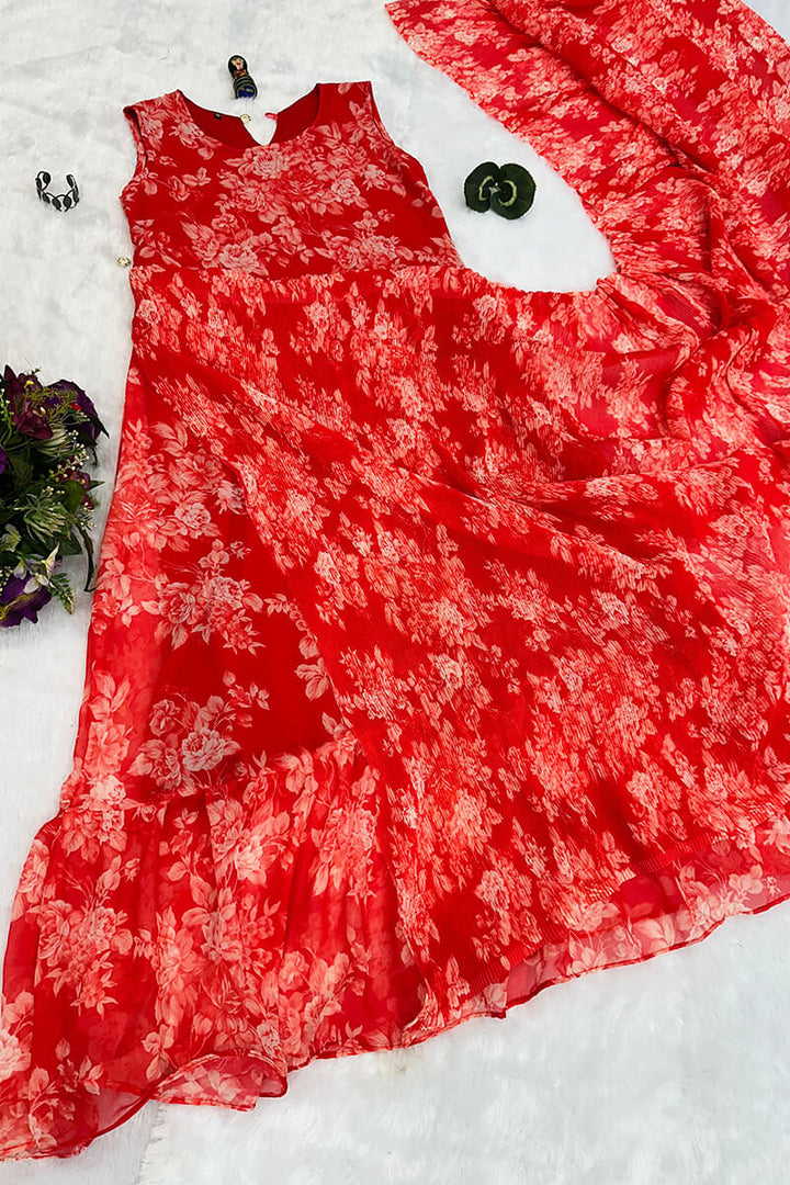 Minute Ready To Wear Georgette Gown Saree with floral red print