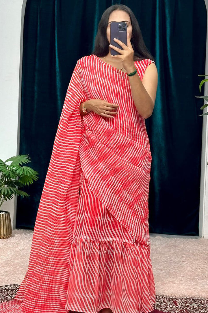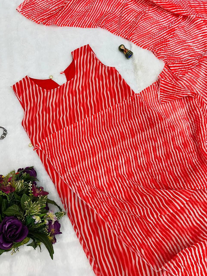 1-Minute Ready To Wear Georgette Gown Saree with laheriya red print