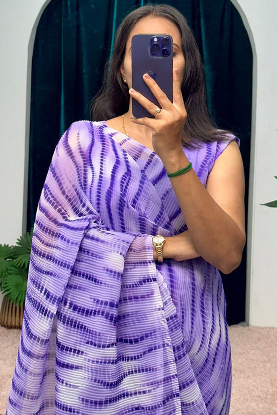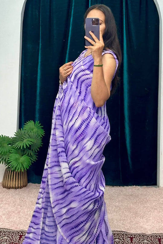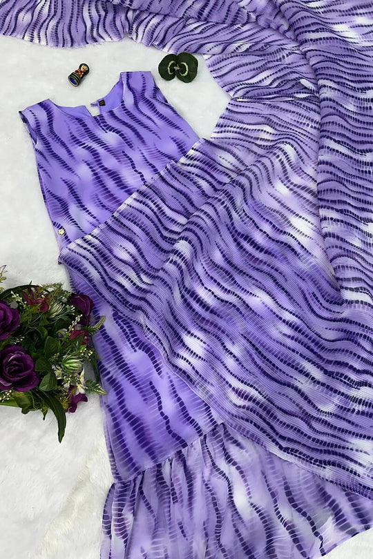 1-Minute Ready To Wear Georgette Gown Saree with purple lining print